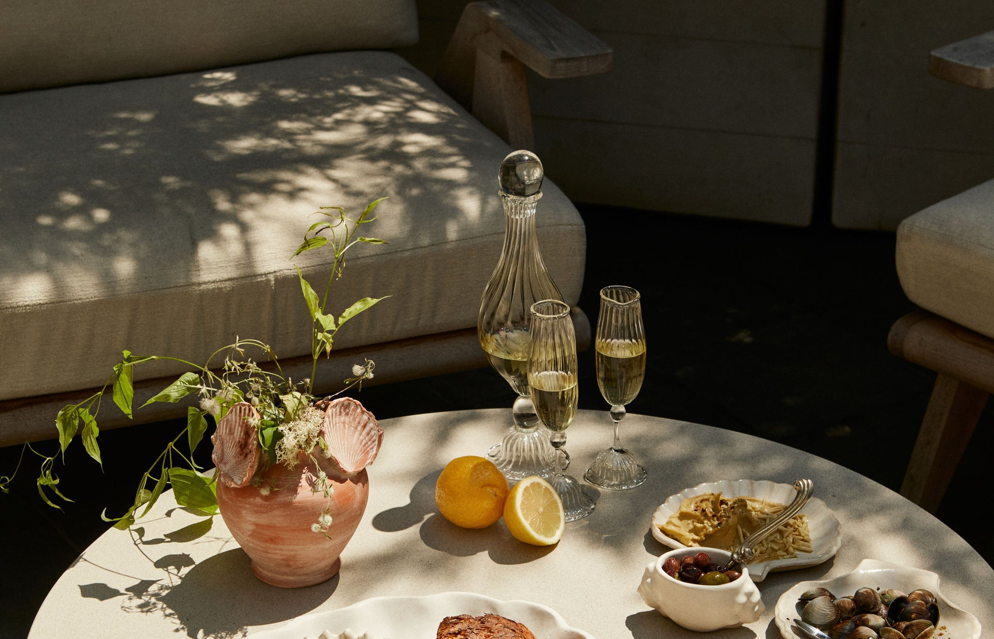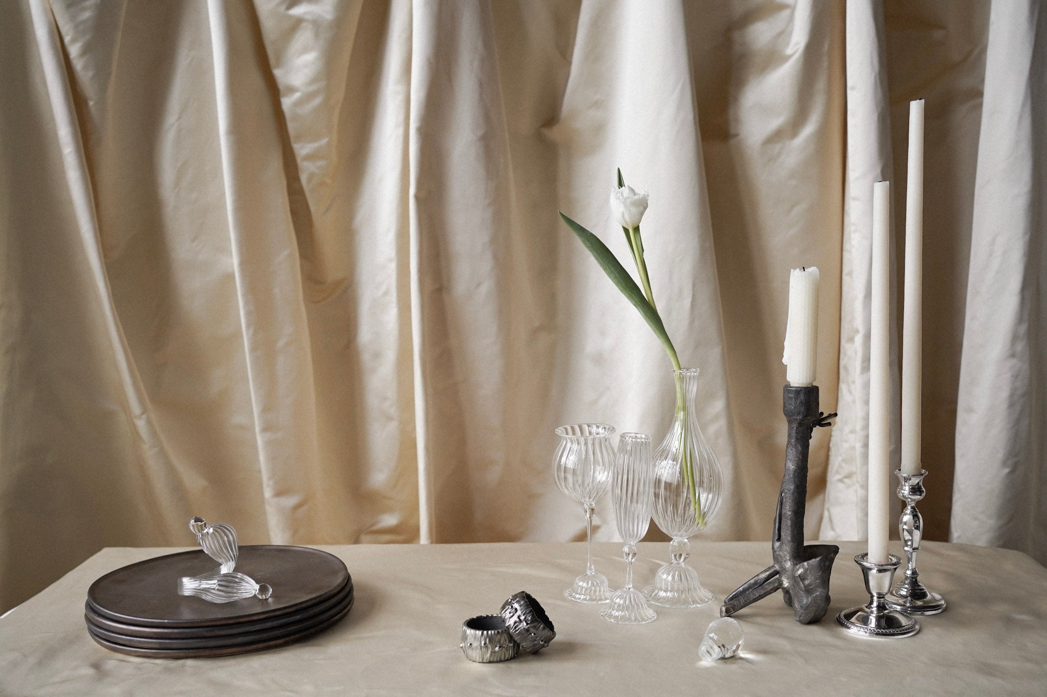 Menard's debut collection for LES includes delicate glassware that is truly jewelry for your table, which makes sense given Menard's background in fashion and jewelry design. Inspired by the gentle and feminine curves of organic forms, her creations evoke a sense of timeless whimsy, inviting you to adorn your table with a bit of magic.