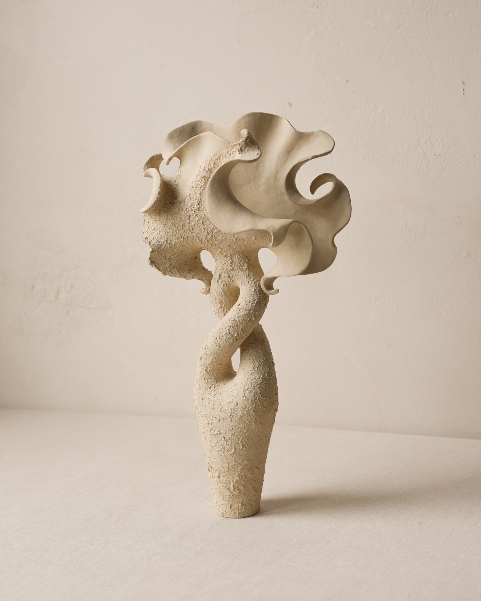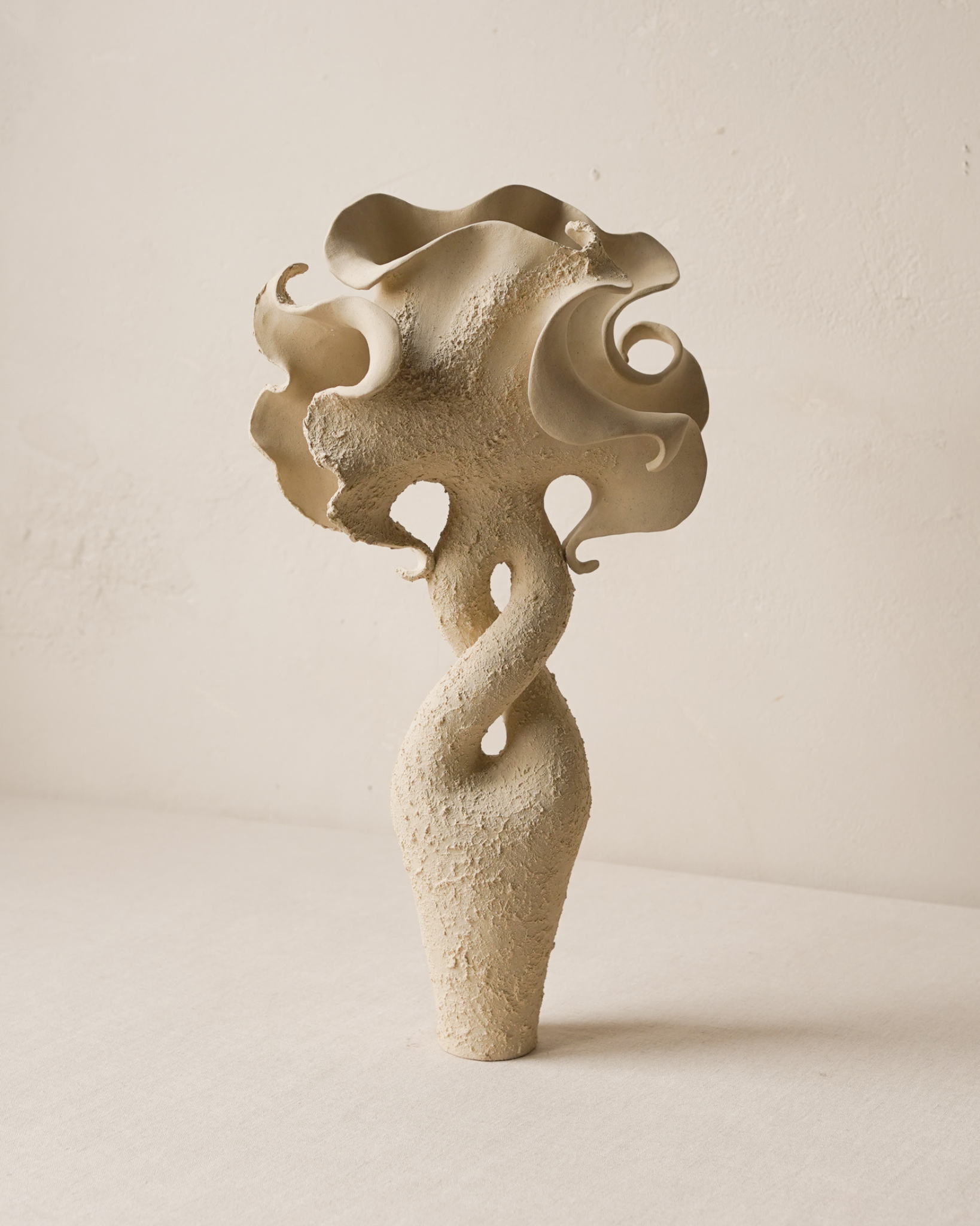 Quirion is a self-taught ceramicist with a background in fashion design and a long-held love of brutalist architecture. All her pieces are hand-built through coiling, pinching, and slab-building techniques, exploring the tension between rigidity and organic form.