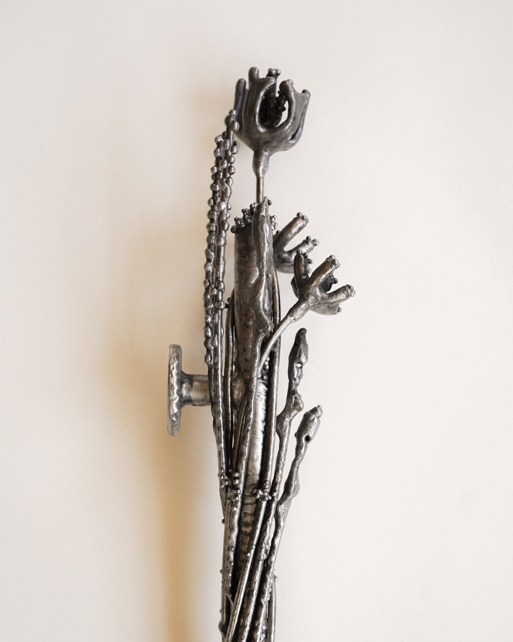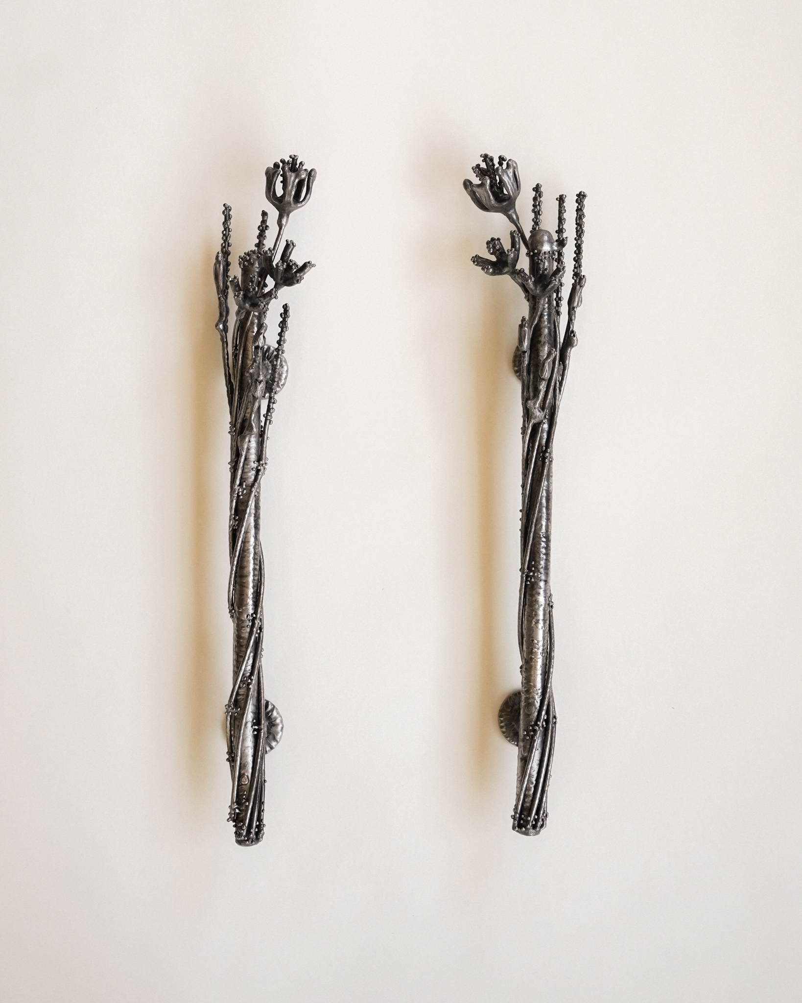 Richard Baronio transforms functional hardware into sculptural expression through his distinctive welding technique, crafting each piece from intricately welded stainless steel rods. His deliberate and patient method reflects his artistic philosophy of exploring materials with an open heart and curious mind, allowing the interplay of steel to guide each creation.