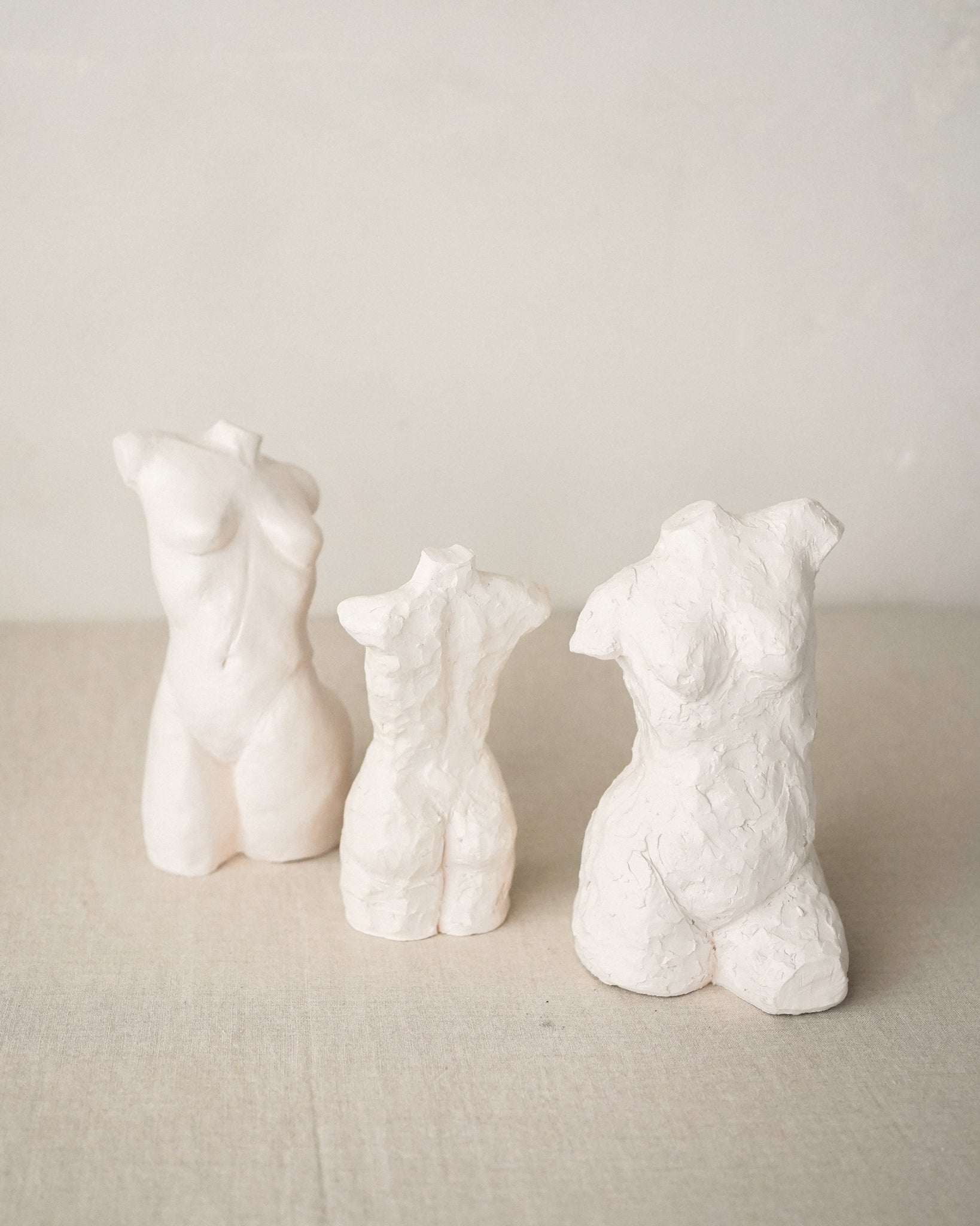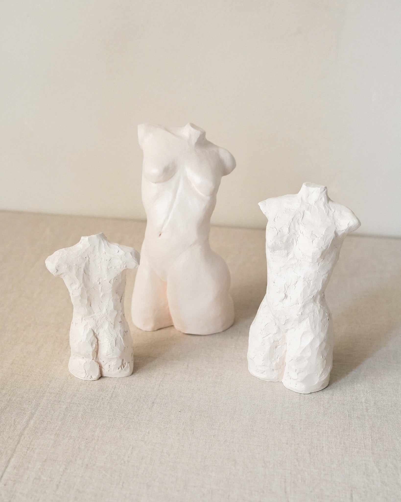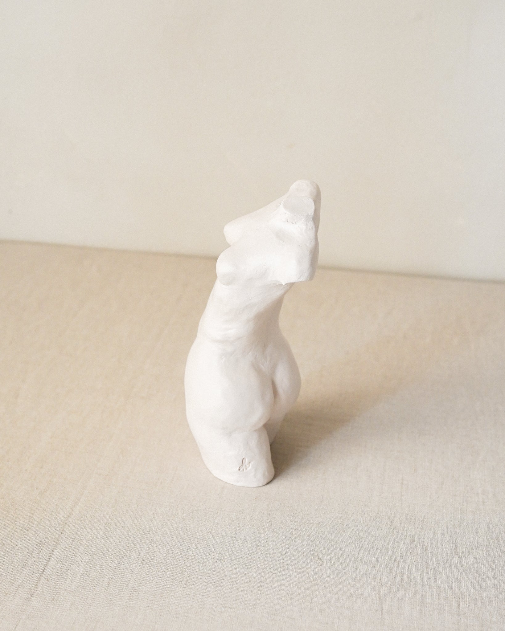 Buchholtz begins with a block of clay and no predetermined vision, letting the material guide her touch as forms take shape. The body serves as her primary subject—never mute, its posture sends powerful messages of vulnerability, courage, and self-confidence.