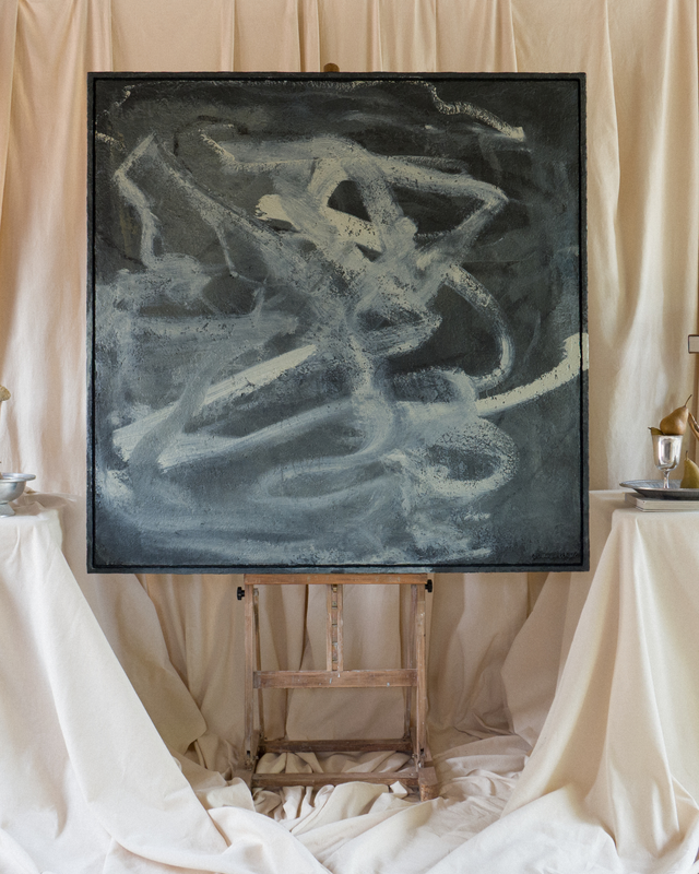 This original painting by Mackenzie Wright captures movement through gesture and color, where pigment dances across heavily textured surfaces. Sacred breath translates into visual form through hues of garden green and stormy sky gray, each gestural brushstroke bringing playful energy to the work.